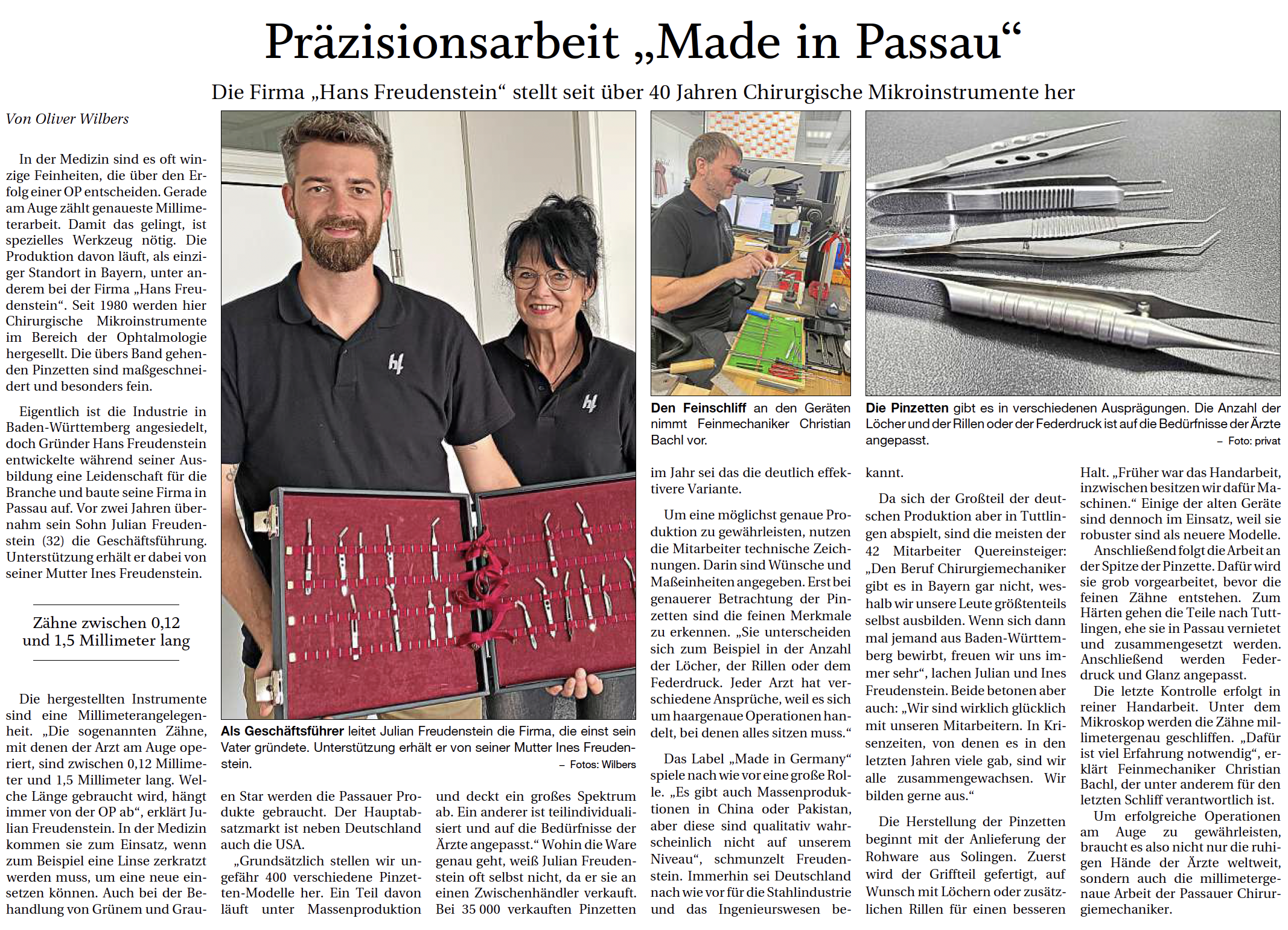 Das Familienunternehmen Hans Freudenstein Chirurgische Mikroinstrumente wurde 1980 von Hans Freudenstein in Passau gegründet und im Laufe der Jahre hat sich die Firma von einem Ein-Mann-Unternehmen zu einer 30-köpfigen Belegschaft entwickelt.